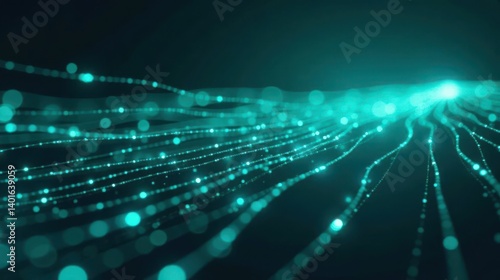 Abstract Teal Light Trails Converging at a Distant Point, Representing Data Flow and Connectivity