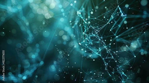 Abstract tech background with interconnected cyber cells and artificial neural connections, showcasing a quantum computing network system and global electronic intelligence.