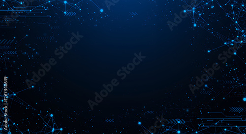 Abstract Tech Network: Dark Blue Connection, Data Flow, & Futuristic System Design. Perfect Background for Innovation & Digital Concepts!