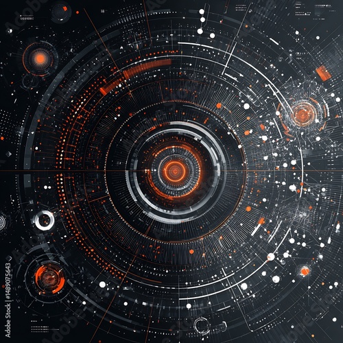 Abstract Technical Visualization: Circular Data Network with Futuristic Design