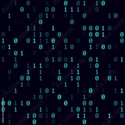 Abstract Technology Background. Cyan sparse binary background. Small-sized seamless pattern. Modern vector illustration.