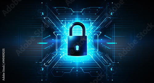 Abstract technology background Network data and information privacy 3D rendering security padlock