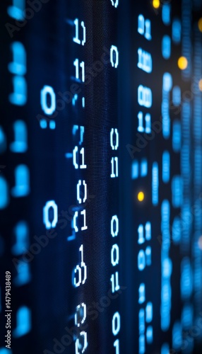 Abstract Technology Background, White Binary Code Against a Blue Screen, Data Analysis Concept