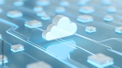 Abstract technology background with cloud computing concept, featuring a digital cloud icon connected to electronic circuits.