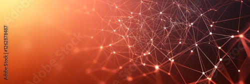 Abstract Technology Background with Connected Dots, Lines, and Triangles on Orange Gradient