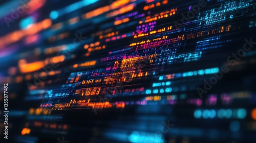 Abstract Technology Background with Data Flow and Programming Code