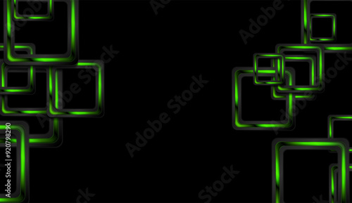 Abstract technology background with glossy green black squares. Geometric vector design