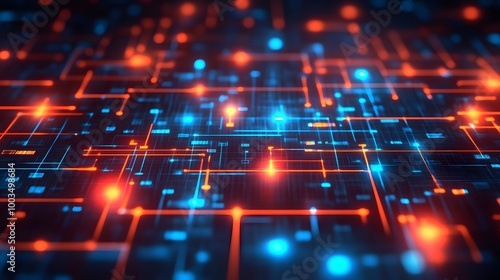Abstract Technology Background with Glowing Lines and Circuits
