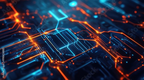 Abstract technology background with intricate digital patterns, glowing lines, and interconnected circuits, representing tech innovation