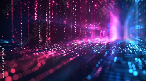 Abstract technology big data background with flowing binary code, digital network connections, and futuristic grid patterns in blue and black, ideal for data analysis, ai, machine learning, and cybers