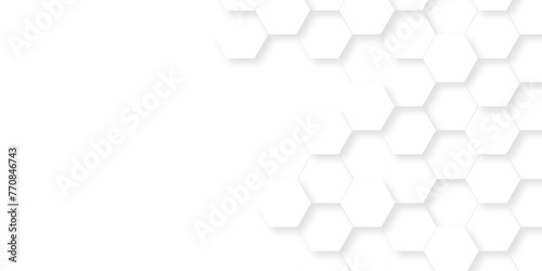 Abstract Technology, Seamless pattern with hexagons. 3d Hexagonal structure futuristic white background and Embossed Hexagon. Hexagonal honeycomb pattern background with space for text.