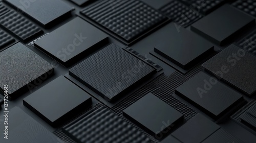 Abstract Textured Black Surface with Geometric Pattern Elements