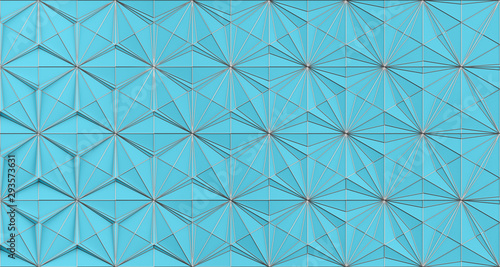 Abstract three-dimensional background of a set of triangular elements of parametric variable height and shape with metallic shiny edges. 3D illustration 3D rendering