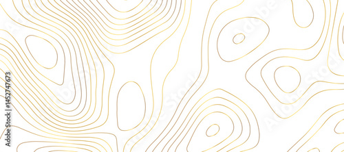 Abstract topographic contour map and geographic mountain relief background design .topography contour map white wave paper and curve golden color lines vector background .