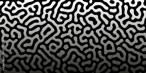 Abstract Turing organic wallpaper with background. Turing reaction diffusion monochrome seamless pattern with chaotic motion. Natural seamless line pattern. Linear design with biological shapes.