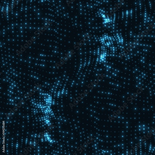 Abstract vector blue wave mesh background. Point cloud array. Chaotic light waves. Technological cyberspace background. Cyber waves.