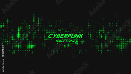 Abstract vector green cyberpunk halftone sound wave. Scrathed dotted texture element.