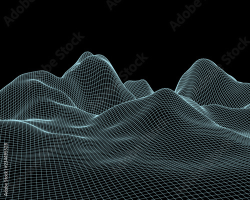 Abstract vector mesh landscape. Cyberspace grid. Data visualization background.