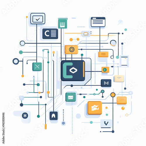 Abstract Vector of Flat Digital Wallet with Circuit Pathways Illustrating AI-Driven Finance and Cost Management Integration on White Background