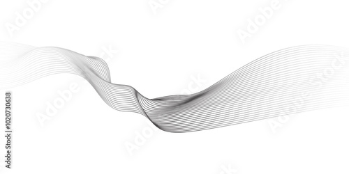Abstract vector wavy lines flowing smooth curve black grey gradient color on transparent background in concept of technology, science, music, modern.