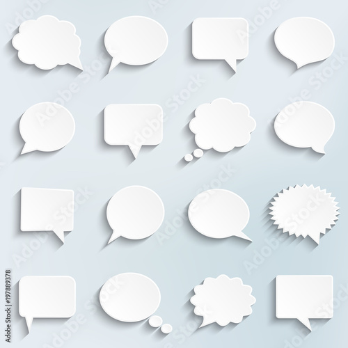 Abstract vector white speech bubbles set
