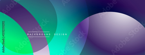 Abstract vibrant design. Overlapping circles create dynamic gradient effect. Smooth transitions between turquoise, purple, green hues. Modern aesthetic.
