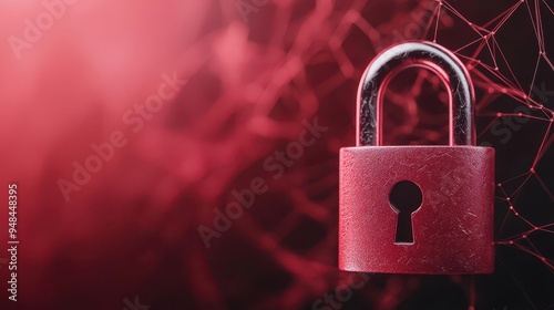 Abstract visualization of a secure digital lock, glowing within a complex web of data, cybersecurity, advanced encryption