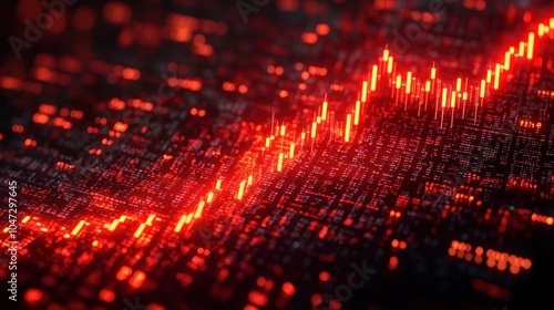Abstract visualization of data trends with glowing red lines on a digital grid.