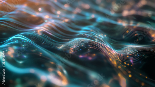 Abstract visualization of feedback loop and modulation waves with chaotic patterns