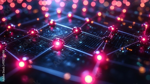 Abstract visualization of interconnected nodes and glowing particles in a digital network environment