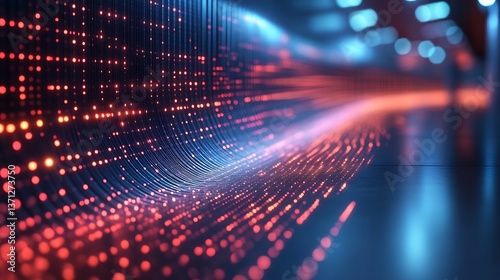 Abstract visualization representing data flowing through a curved path