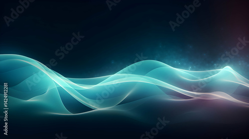 Abstract visualization showcasing dynamic turquoise waves against a dark backdrop