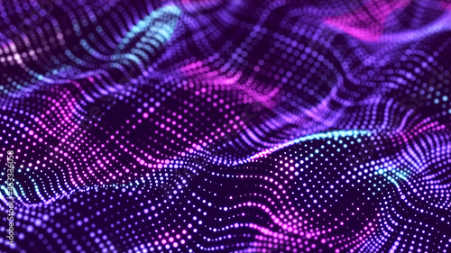 Abstract wave background with many glowing particles. Musical wave. Digital network background. 3D rendering.