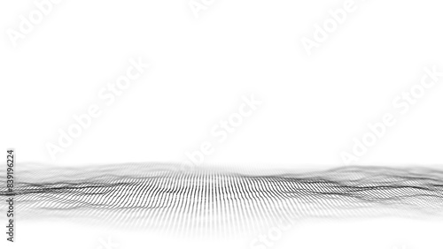 Abstract wave with black points and lines on white background. Science background with moving dots. Network connection technology. Digital structure with particles. 3d rendering.