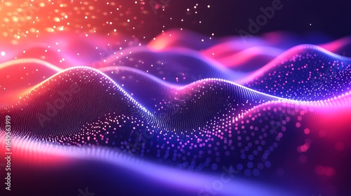 Abstract wave with moving dots and lines producing abstract stream