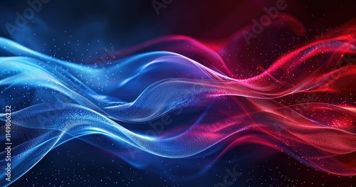 Abstract waves in blue and red, creating a dynamic, vibrant visual effect.