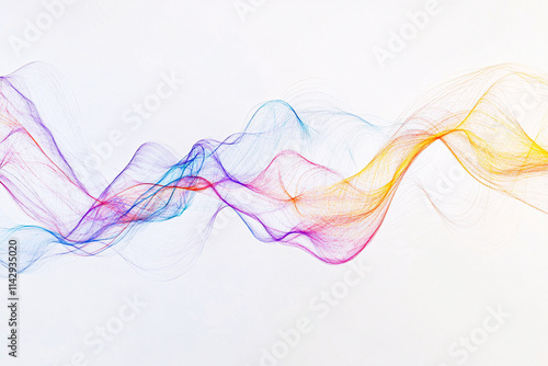 Abstract waves in purple yellow and blue smoothly blend creating an artistic flow on a white background