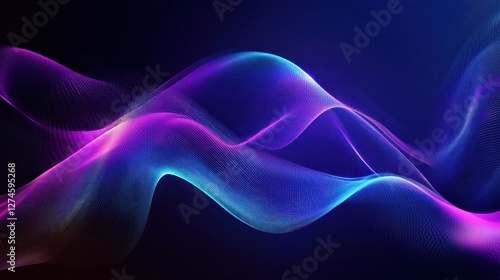 Abstract Waves of Digital Art: Neon Blue and Purple Flowing Design