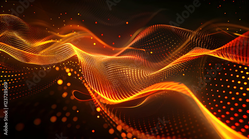 Abstract waves of orange and yellow light create a dynamic, flowing visual effect.