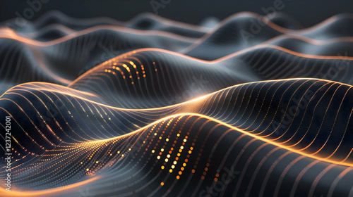 Abstract waves with glowing lines and dots, representing data or digital concepts.
