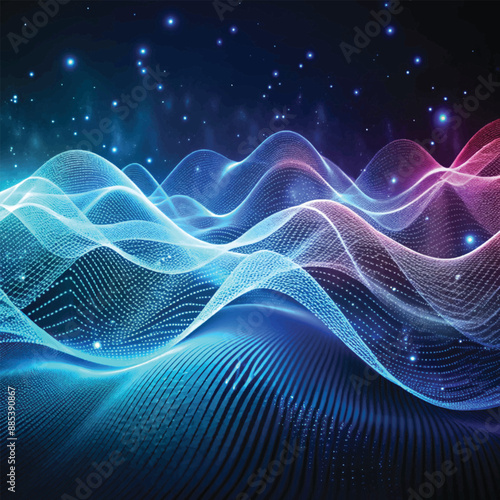 Abstract waves with pulsating particles, futuristic motion background design, vector elements