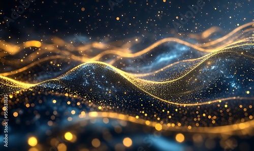Abstract Wavy Background with Golden Sparkles