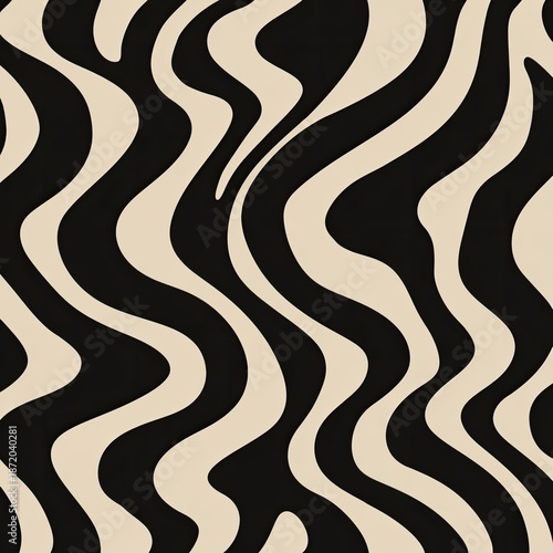 Abstract wavy lines in black and tan create a seamless, organic pattern
