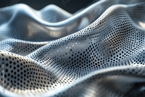 Abstract wavy metallic surface with perforated pattern, modern design background.