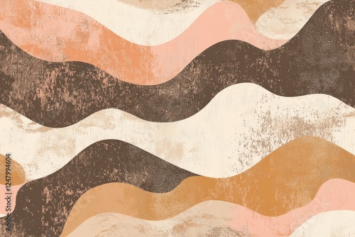 Abstract wavy pattern with earthy tones and textured background.