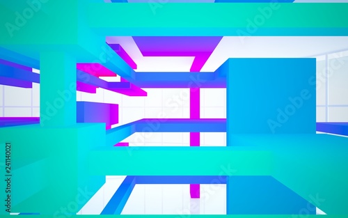 Abstract white and colored gradient interior multilevel public space with window. 3D illustration and rendering.