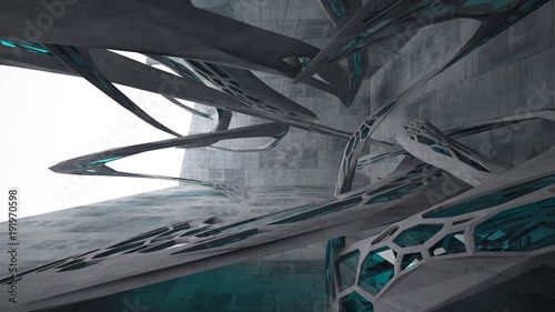 Abstract white and concrete parametric interior with window. 3D illustration and rendering.
