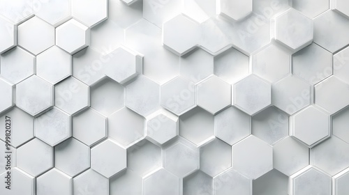 Abstract white and gray geometric hexagon overlapping layer with shadow background.