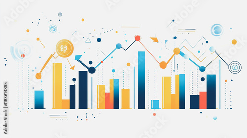 Abstract white background with Colorful charts and graphs with statistics to innovative analyze business potential and forecast future development of companies growth.