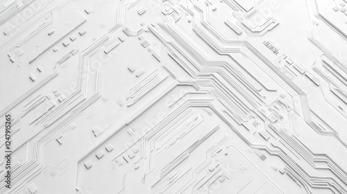 Abstract White Circuit Board Design with Textured Lines and Patterns